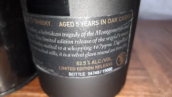 Nase: Ein Hitzefluss aus Torfrauch, Sumpfmyrte, Heidekraut, Wildthymian und Wacholder harmonisiert, um die Sinne in Ekstase zu versetzen. Danach weht ein wunderschönes Blumenbouquet aus gelben, am Flussufer, Sommerblumen (Primel, Butterblume, Fahnen-Iris und wilden Lilien) vorbei? der Wind ändert sich? und jetzt sind die Gerstenfelder Gerstenfelder kurz vor der Ernte, mit süssen Vanille-Noten von Bourbon getränkt Eiche. Im Laufe der Zeit, Zitronenschale und Klee Honig, Slipstream auf eine kühlende, Meeresbrise.