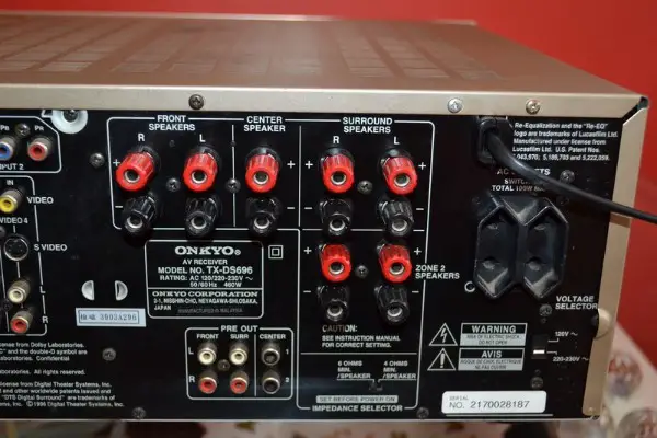 Anschlussseitig ist die Ausstattung gut: 4 frei zuweisbare Digitaleingänge und ein 5.1-Eingang sind vorhanden, genauso wie 2 Komponenteneingänge und 1 Komponentenausgang. Über die Pre Out-Anschluss-Sektion können noch hochwertigere Endstufen für die Front-, den Center- und die Surround-Lautsprecher angeschlossen werden.