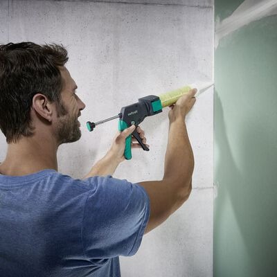 Die Kartuschenpresse ist aus Metall und Kunststoff gefertigt und ist mit einem cleveren Tropf-Stopp-Mechanismus ausgestattet, die dafür sorgt, dass der Dichtstoff sofort zu fliessen aufhört, sobald der Auslöser losgelassen wird.