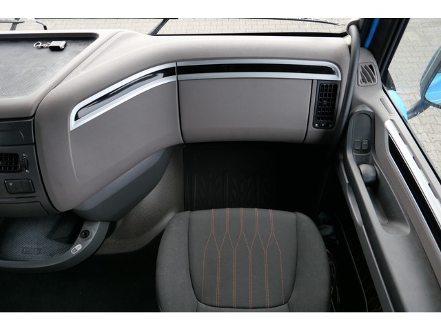 Hubraum: 10.837 cm³ Euronorm: CHF 6 Fahrerhaus: Super Space Cab Vollluftgefedert Retarder ABS EBS ESP Berganfahrassistent Spurhalteassistent Abstandsregeltempomat mit Notbremsassistent luftgefederter Komfortfahrersitz / Fahrer