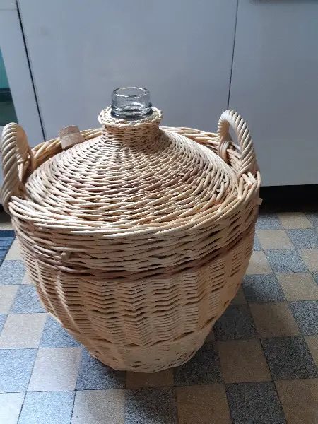 Die Korbflasche wurde 2022 einmal für Kirsch benutzt. Sie ist in einem neuwertigem / hervorragenden Zustand. Hergestellt wurde sie in Bostadel. Ihr Durchmesser beträgt 45cm. Ihre Höhe ist 55cm