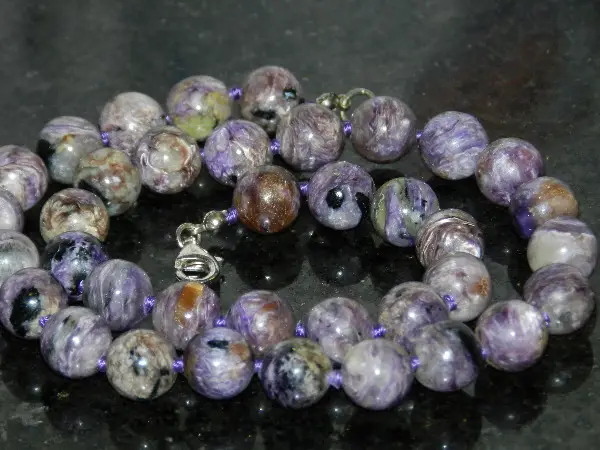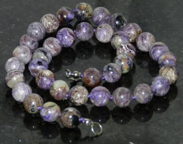 Halskette "Charoit", Kugeln 11 mm, einzeln geknotet