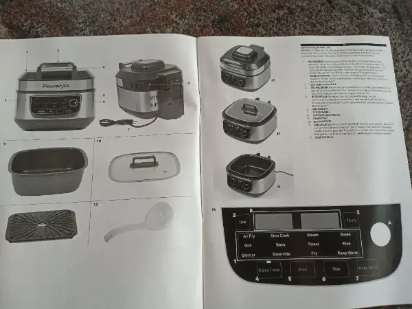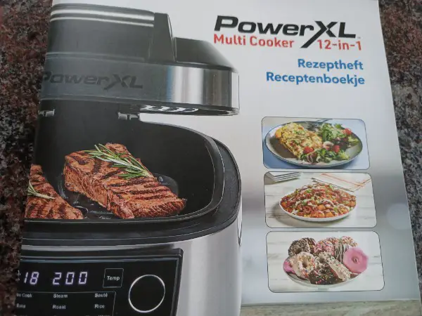 Dieser Power XL Multi Cooker 12- in 1, ist Heissluftfritteuse, Indoor- Grill, Slow Cooker, Dampfgarer, Bratpfanne Reiskocher, Schmortopf, Sous-Vide-Gerät, Grill usw. und Warmhalteplatte.