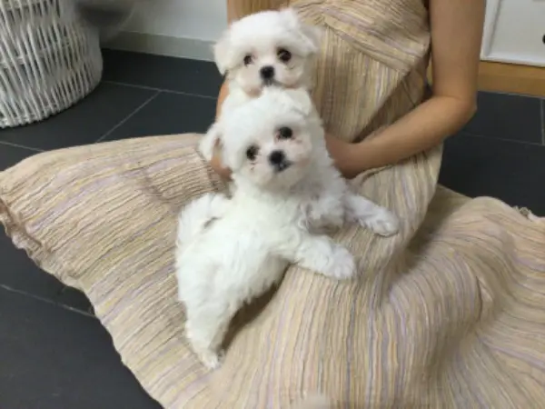 Die Malteser Welpen haben einen Pass, einen Mikrochip und sind auch geimpft. Sie nahmen auch Entwurmungstabletten ein.