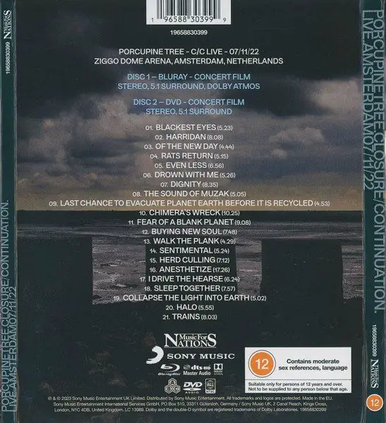Porcupine Tree - Closure / Continuation.Live.Amsterdam 07/11/22 Blu-ray/DVD