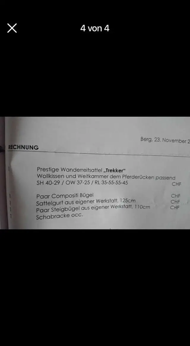 Verkaufe meinen gebrauchten Prestige Trekker Wanderreitsattel. Der Sattel ist in gutem Zustand und wurde nur ein knappes Jahr in gebrauch. Der Wanderreitsattel ist bequem für Pferd und Reiter und somit ideal für lange Ausritte. Kammerweite und Zubehör siehe Rechnung. Weitere Fotos zum Sattel gerne auf Anfrage.