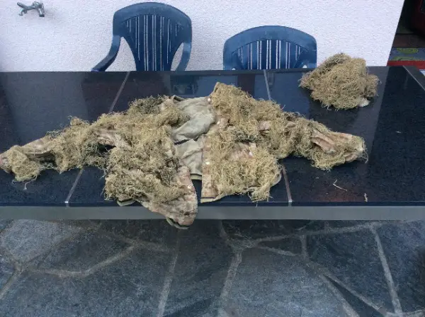 Ghillie Suit - Tarnanzug in gebrauchtem Zustand, perfekt für Jagd, Airsoft oder Naturbeobachtung.