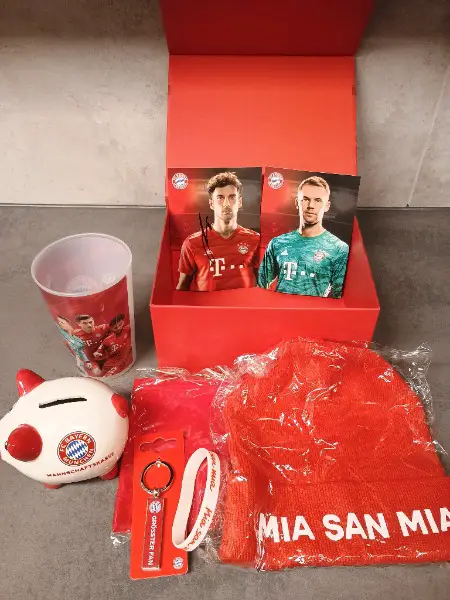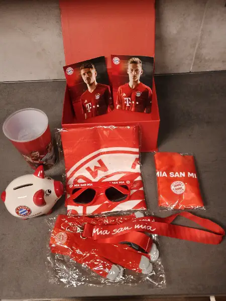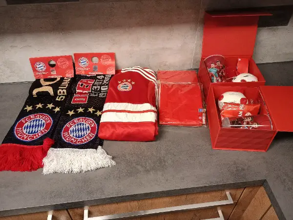 Zu verkaufen sind die abgebildeten Fanartikel des FC Bayern München.