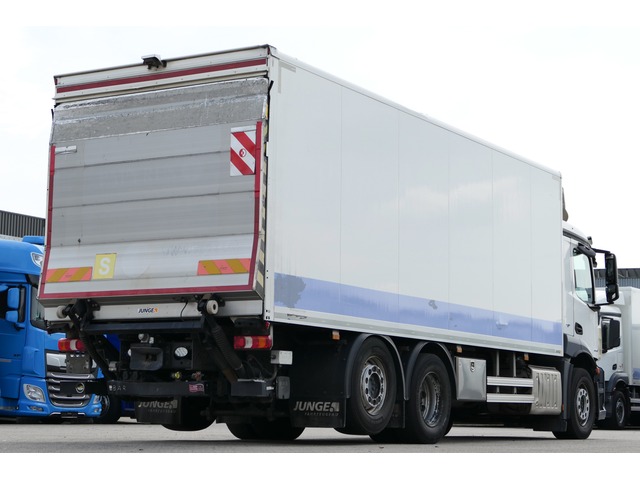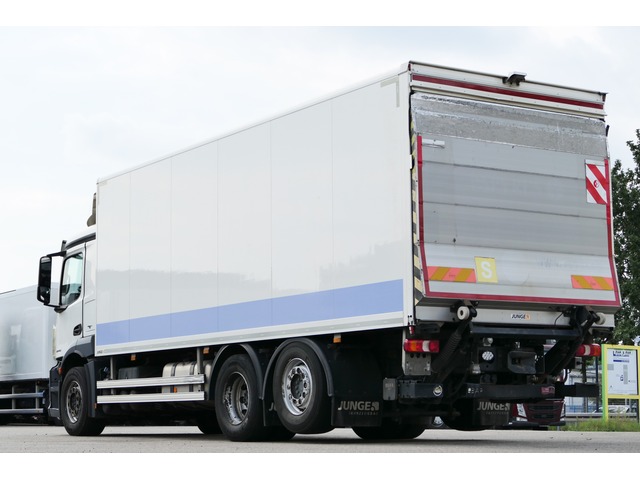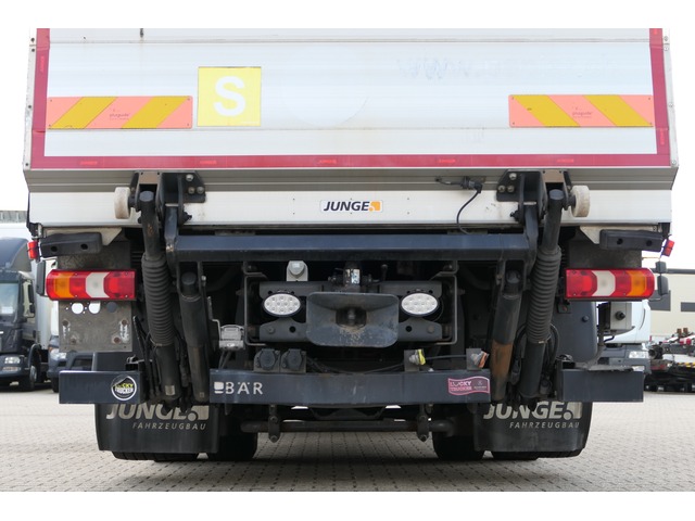 Steckdose 12V / 24V anschluss im Beifahrerfussraum Abgasnorm CHF 6 Aussenspiegel elektr. verstell- und heizbar Fensterheber elektrisch AdBlue Bremsanschluss Standard und DuoMatic Liftachse Unterfahrschutz Anhängerkupplung Sonnenblende ausssen Transparent Dachspoiler Aufbau: Koffer Hersteller: Junge Ladebordwand: