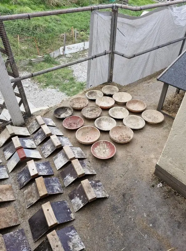 Zubehör. Sitzbretter sind nicht mehr vorhanden Nistschalen etc vorhanden.