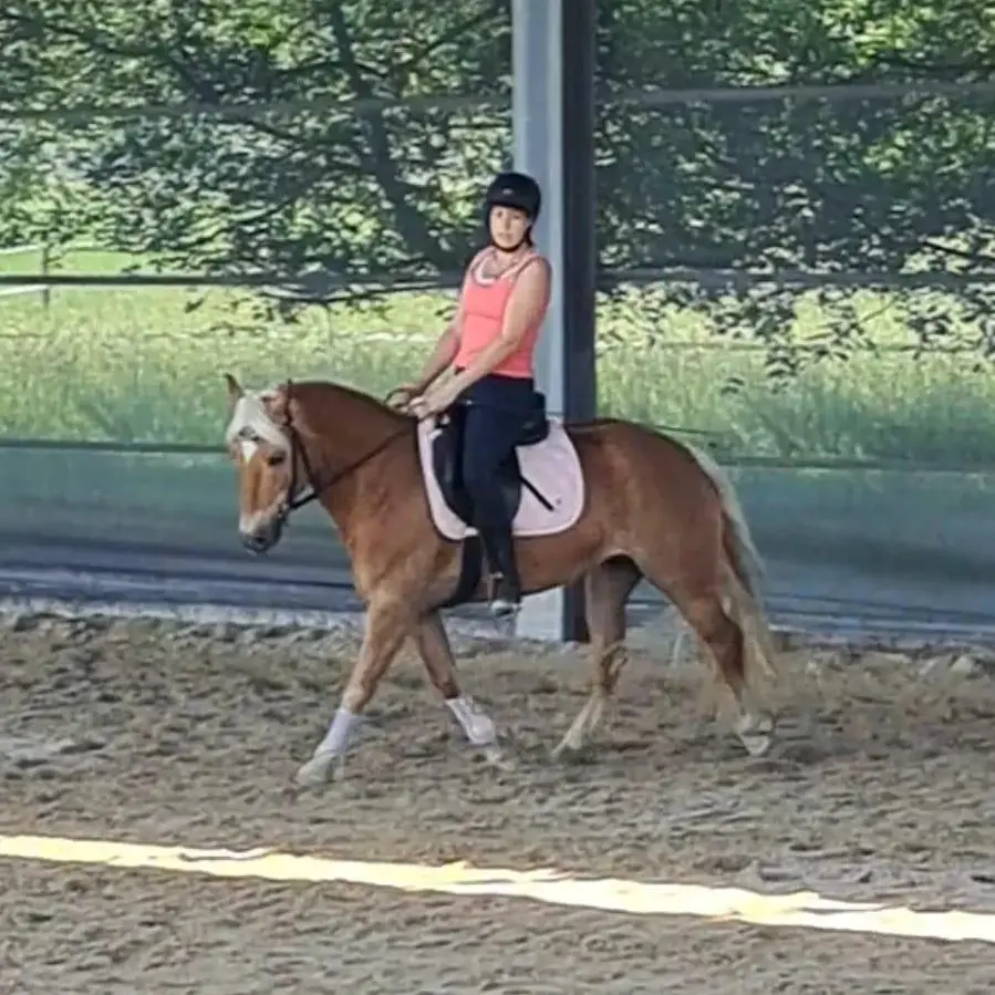 Mit anderen Stuten kann die Haflinger Stute sehr zickig sein, aber mit Wallachen hat sie kein Problem. (Solange die nicht zickig sind) . Auf dem Reitplatz oder in der Halle ist Sie immer stehts bemüht zu gefallen, da muss der Galopp noch ein bisschen mehr erarbeitet werden. Daher ist die Haflinger Stute nicht als Anfängerpferd geeignet. Sie ist Englisch geritten.
