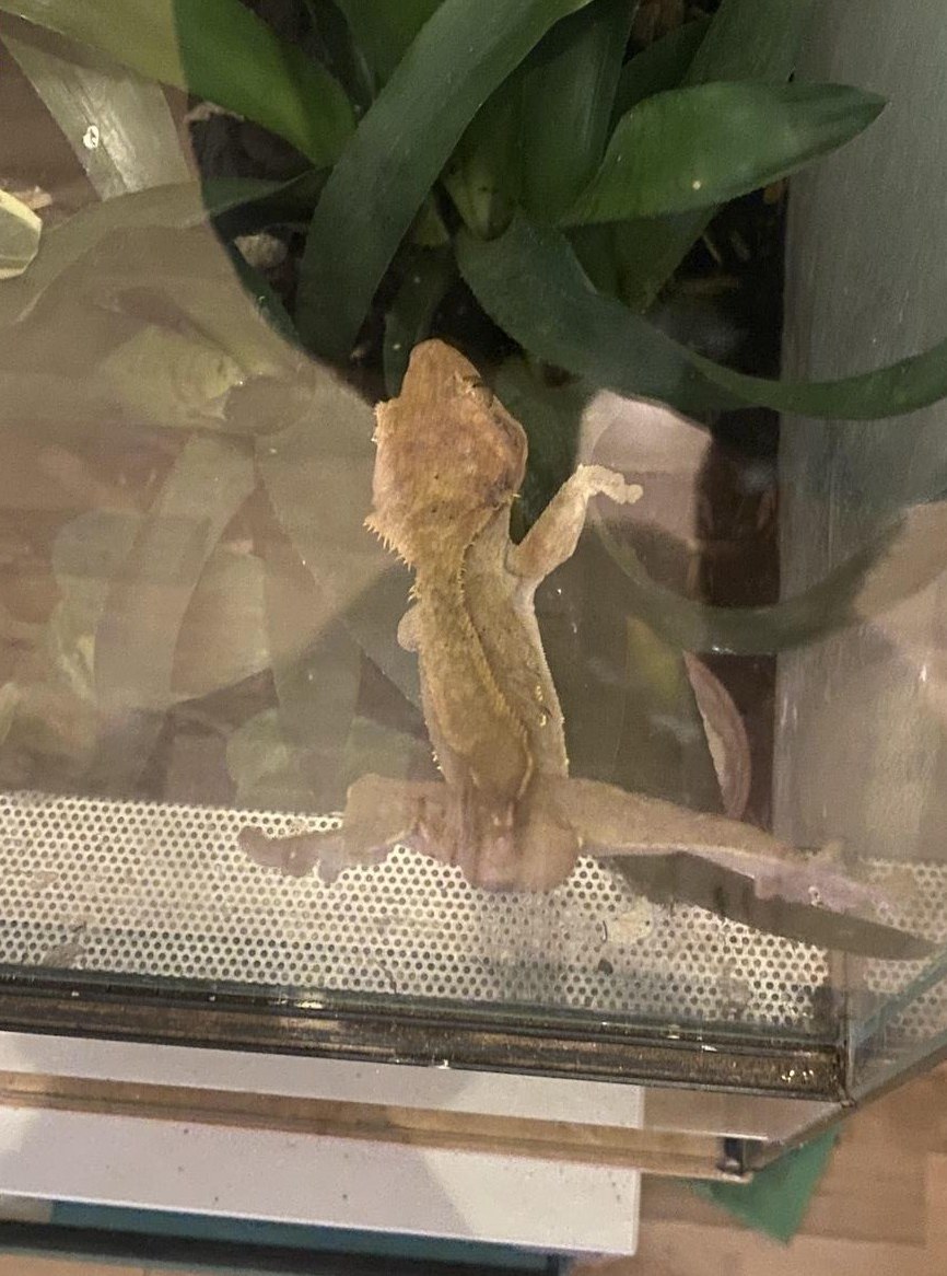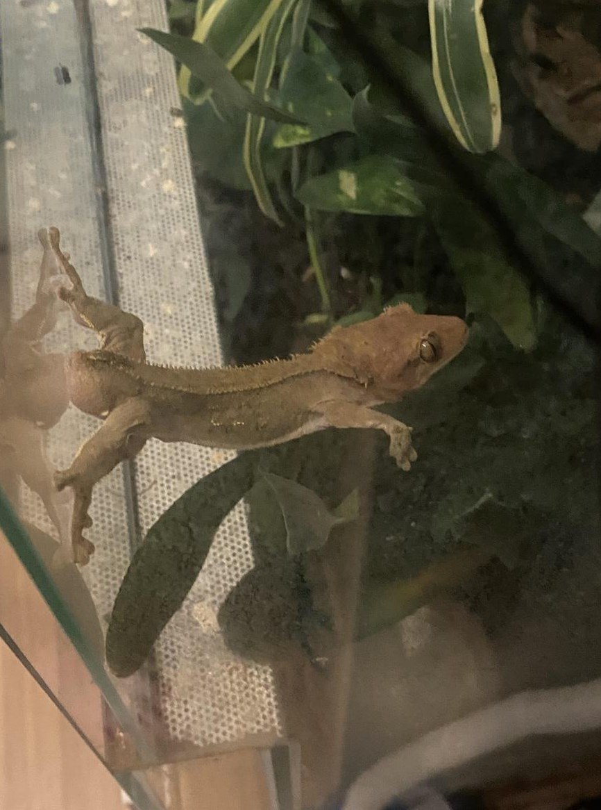 Das Kronengecko Männchen ist ausgewachsen, hat leider keinen Schwanz mehr.