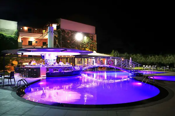 Der Komplex verfügt über einen grossen Swimmingpool mit Sitzbereich „Wet-Bar“ im Pool, ein separates Planschbecken für Kinder, eine Poolbar / Snackbar und eine sehr grosse Erholungswiese. Ausserdem gibt es eine weitere Aussenbar, einen Frühstücksbereich und die Rezeption.