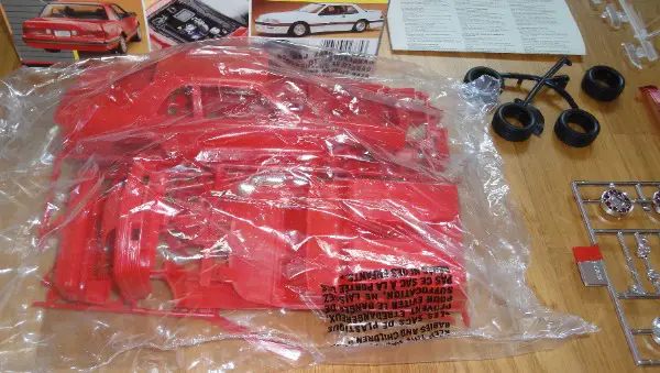 Der Bausatz ist von 1986, die Teile sind noch originalverpackt, der Karton hat Gebrauchsspuren.