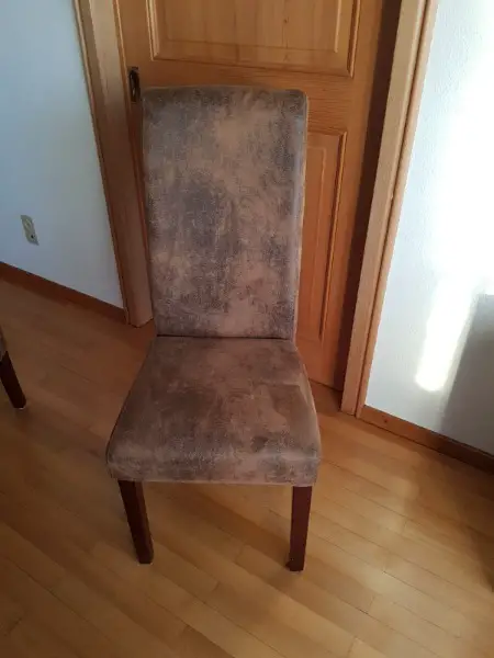 Zum Verkauf stehen insgesamt sechs Esszimmer Stühle in modernem Design. Die Stühle sind gebraucht, sie sind indes sehr gut erhalten. Sie wurden stets gepflegt und sauber gehalten. Sie weisen keine nennenswerten Gebrauchsspuren auf, das Sitzen darin ist sehr bequem. In unserem Haushalt gibt es weder Kinder noch Tiere. Die Stühle sind insbesondere für Oldtimer Liebhaber und Shabby Chic Enthusiasten geeignet. Nachstehend die Dimensionen der Stühle: