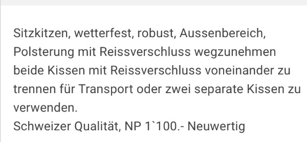 Sitzkissen, wetterfest, robust, Aussenbereich