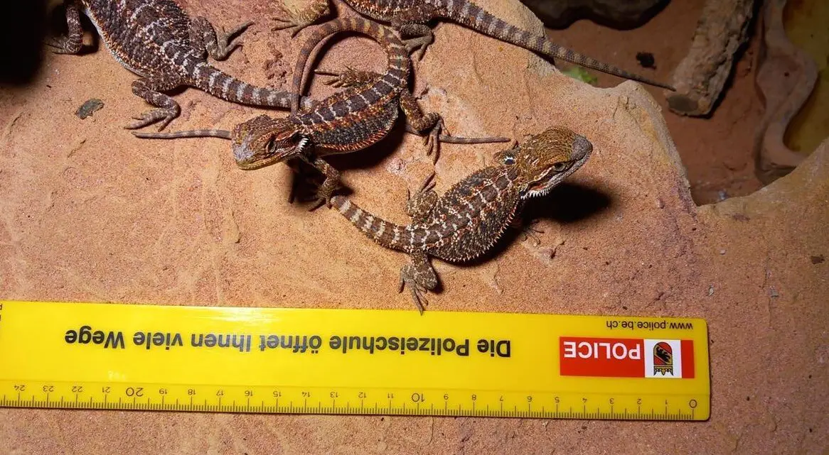 Sieben Bartagamen Jungtiere, geschlüpft im August, sind noch zu haben. Es handelt sich hierbei um die grosse Sorte. Geschlecht unbestimmt. Futterfest, neugierig und sehr aktiv. Weitere Infos zu den Bartagamen auf Anfrage.