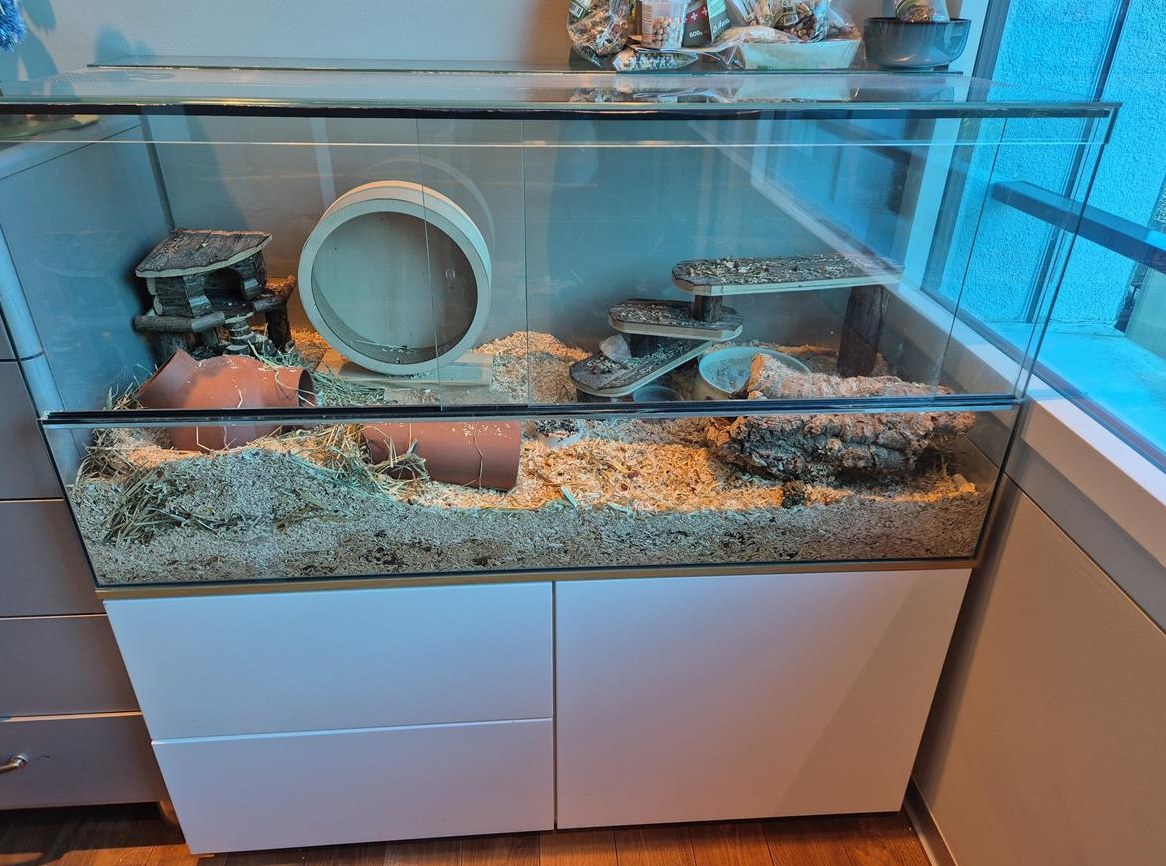 Verkaufe gut erhaltenes Hamstergehege / Glasterrarium 120x60cm mit