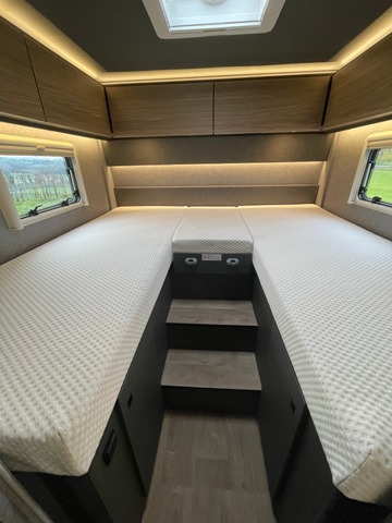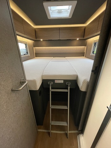Verkaufsargument: Der Trend T 7057 EB vom deutschen Hersteller Dethleffs überzeugt mit gutem Raumgefühl, Längsbetten im Heck sowie Hubbett über der Dinette und der umfangreichen Ausstattung. Family-Paket, Chassis-Paket und Vorbereitungskit sind ebenfalls mit dabei. Bei dem Angebot handelt es sich um ein Mietfahrzeug, das nach Mietsaison im November 2024 mit ca. 20’000 km verkauft wird. Sollte das Fahrzeug nicht verkauft werden, ist 2025 auch eine Miete möglich, fragen Sie uns an! Einige Details zum Basisfahrzeug: - Fiat Ducato mit 2.2L 140 PS, 6-Gang manuell - ABS / EBD (Elektronische Bremskraftverteilung) - Aussenspiegel el. verstell- und beheizbar inkl. Totwinkelspiegel und integriertem Blinker - Captain Chairs, Doppelarmlehnen, drehbar inkl. Höhe- und Neigeverstellung für Fahrer- und Beifahrersitz Cup Holder im Armaturenbrett mittig - grosser Dieseltank 90 Liter inkl. 19L AdBlue Tank - ESP inkl. ASR, Traction Plus, Hill Holder und Hill Descent Control - Fahrer- und Beifahrerairbag - Fahrerhaus Klimaautomatik - Schmutzfänger an Hinterachse - Tagfahrlicht im Scheinwerfer integriert - Tempomat - Verbreiterte Hinterachse - 16" Alu-Felgen, schwarz - Lederlenkrad & Schaltknauf - Multifunktionslenkrad - Multimediasystem mit Navigation, DAB+, Apple Car Play & Android Auto & Vernetzung mit dem Bord-Controlpanel - Rückfahrkamera - und vieles mehr! Einige Details zum Aufbau: - Grosse Heckgarage: rechte Garagentüre mit Dreh-/Spannverschluss, Heckabsenkung (150 kg Flächenlast) , Anti-Rutsch- Oberfläche, beheizt, Zurrleisten, beleuchtet, 1x 230 V Steckdose - Einzelbetten längs, inkl. komfortablen Aufstiegsstufen - Raumhoher