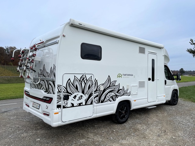 Werkstatt mit geschultem Personal gerne für Sie da. Sei das für Nachrüstungen wie zum Beispiel einer Solar-Anlage, Fahrradträger, SAT-Anlage oder natürlich auch für allfällige Garantie- und Servicearbeiten. Wir berechnen keine Ablieferungspauschale. Eine Vignette, ein Ablieferungs-Kit mit Pannendreieck, Warnwesten und eine Autoapotheke sind bei uns genauso inklusiv wie eine perfekte Reinigung, die ganze Immatrikulation, ein voller Dieseltank und eine detaillierte Einweisung in das neue Fahrzeug. Besichtigung des Fahrzeugs nur nach vorheriger Terminvereinbarung. Irrtum & Fehler vorbehalten Tartaruga AG - Mit Sicherheit Abenteuer erleben