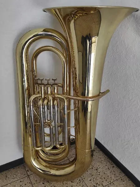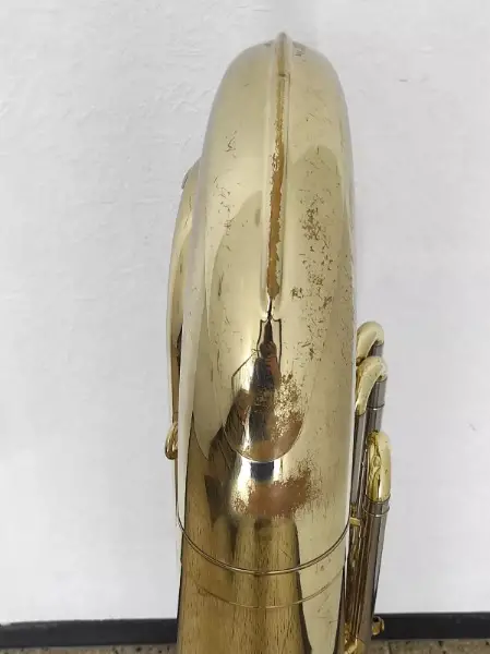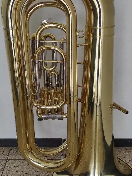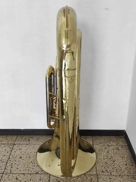 Die Tuba befindet sich technisch in einem guten Zustand, Ventile laufen und die Züge sind alle gängig, äusserlich hat sie hier und da ein paar Gebrauchsspuren.