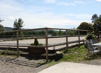 Hervorragende Infrastruktur inkl. Halle, Sandviereck, Roundpen, gedeckte Führmaschine etc.
