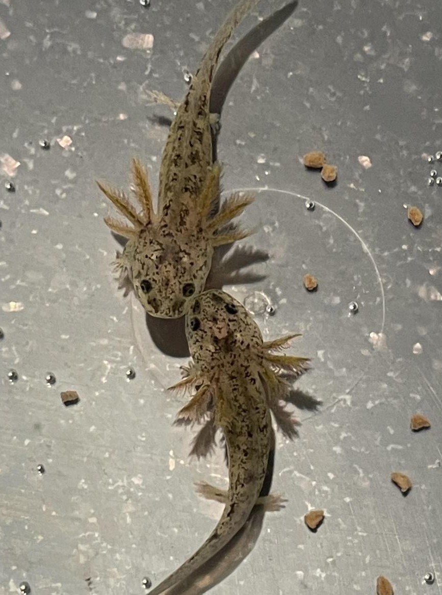 Axolotl Babys. Aktuell haben die Axolotl eine Grösse von 9-11 cm (geschlüpft Mitte Oktober) , mit 10cm Grösse dürfen sie in ein