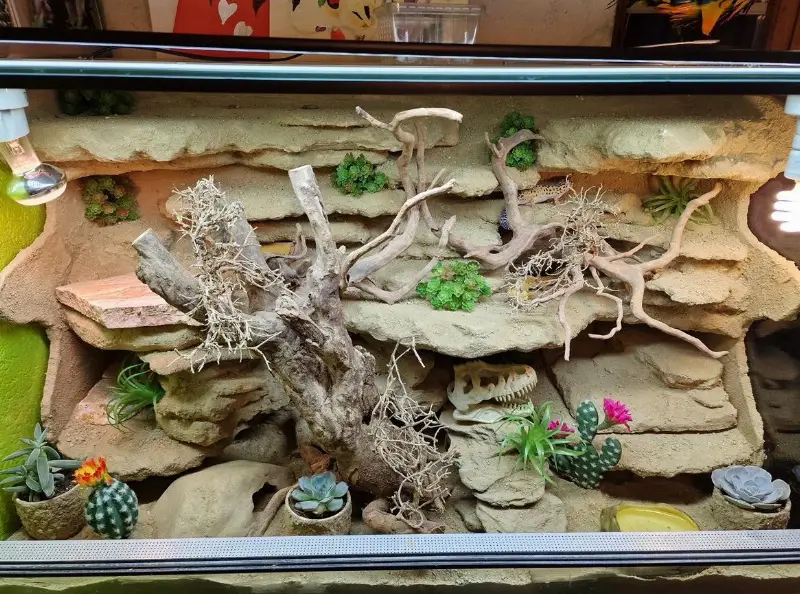 Terrarium ist 100x50x60cm (LxBxH) inkl. fast neuen Wärme- und UV-Lampen (ca 3 Monate alt) .