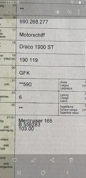Motorboot Draco 1900 ST, Jg. 88, letzte MFK 8.22, Abgastest gültig bis 4.27,