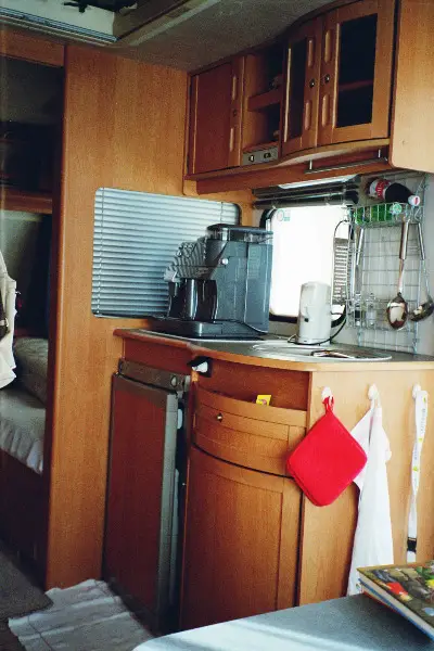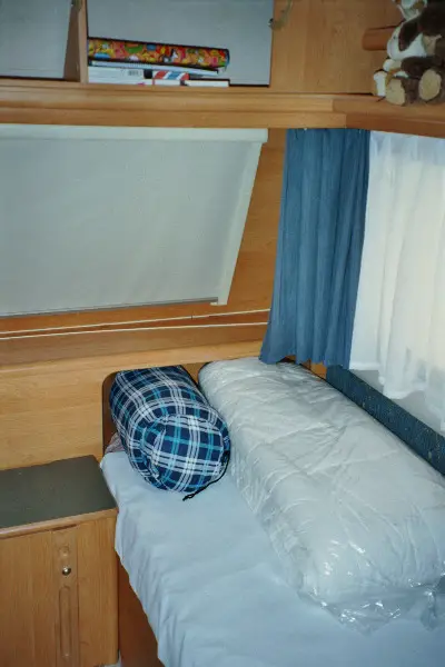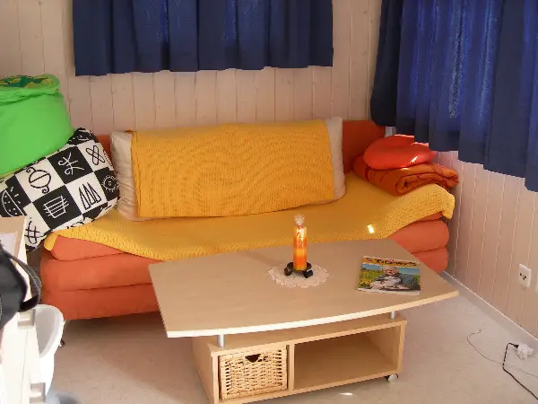 Wohnwagen (20-jährig) mit fix angebautem, isoliertem und überdachtem Vorbau sowie sep.