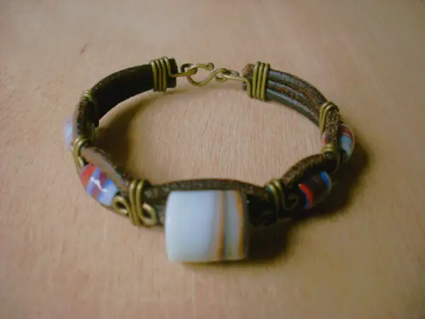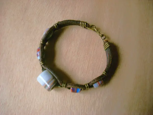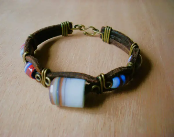 Bracelet en cuir avec différentes perles.