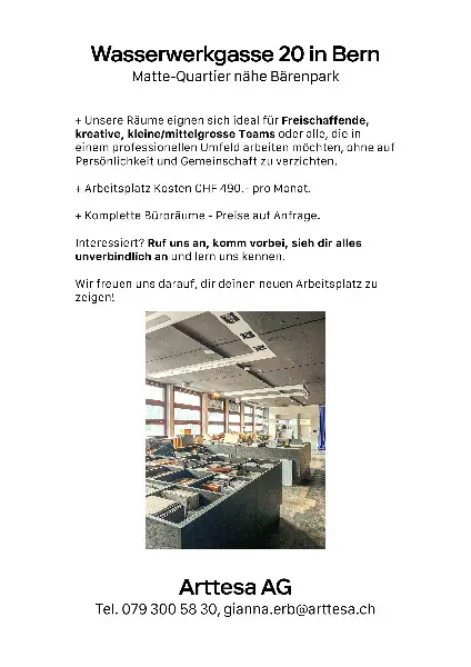 + Arbeitsplatz Kosten CHF 490.- pro Monat.