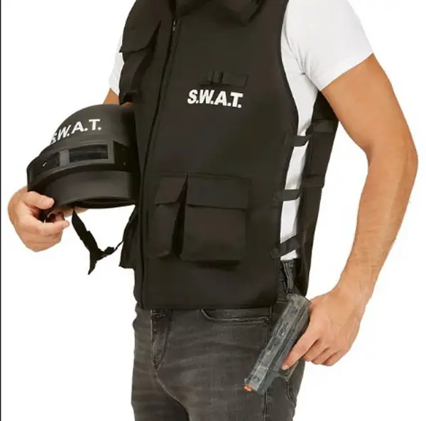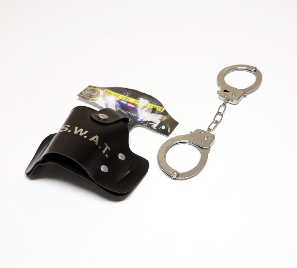 - mit Handschellen Metallausführung (kann durch Lasche geöffnet werden)