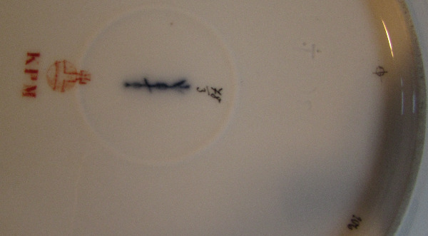 Dekoration fand ebenfalls in der Manufaktur statt, darauf verweist die Malereimarke (roter Reichsapfel) . Jedes Teil ist gemarkt mit blauen Zepter, rotem Reichsapfel und Malerzeichen plus Dekornummer