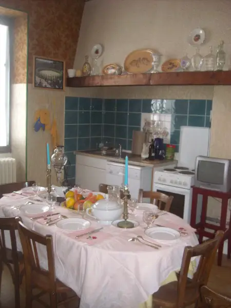 Au rez-de-chaussée, cuisine et salle à manger avec un clic-clac pour deux personnes