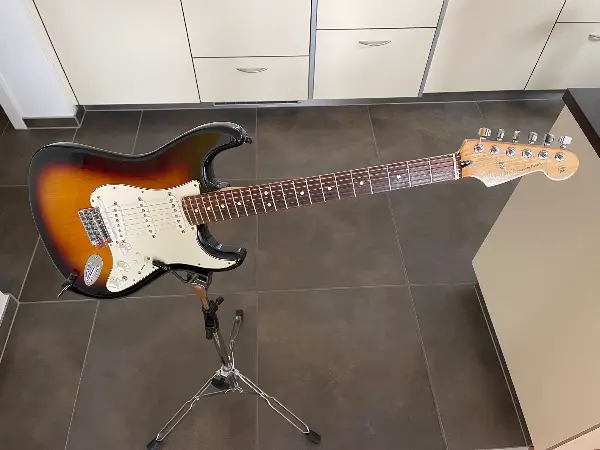 Schwenkbare Instrumentenhalterung für e-Gitarren.