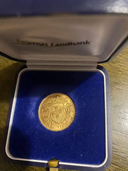 Goldvreneli 20 Franken 1922 in Box