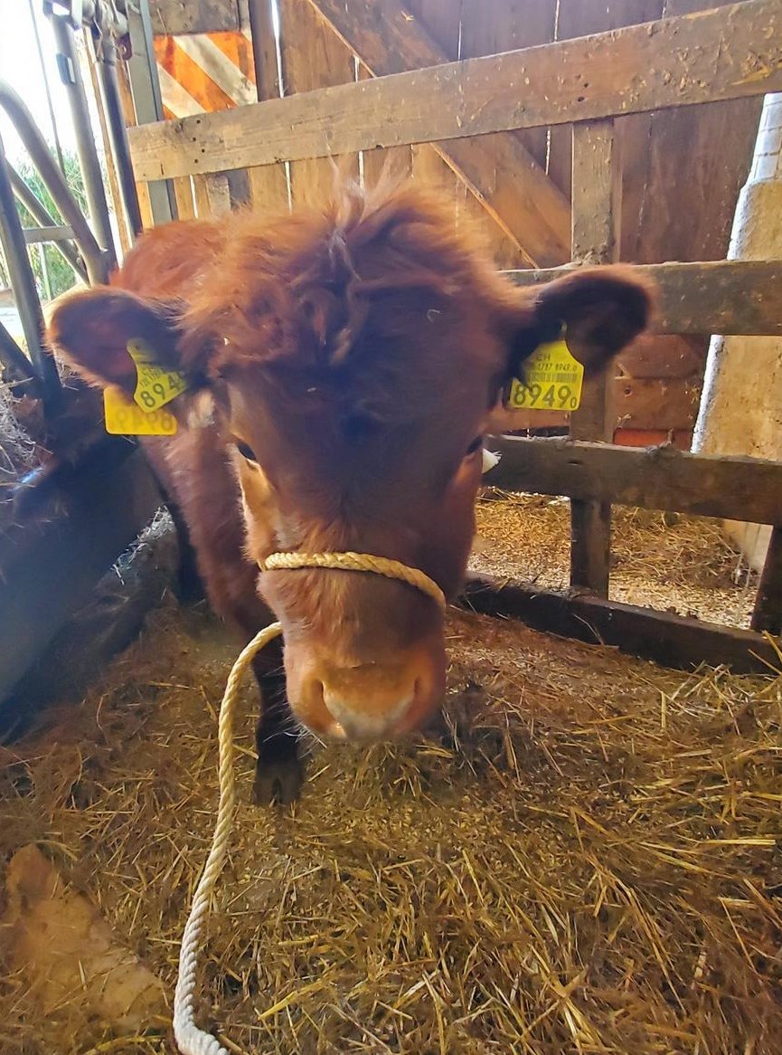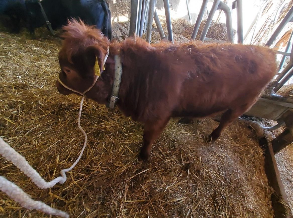 Sie ist halfterfügig, genetisch hornlos, reinrassig und sehr liebesbedürftig.