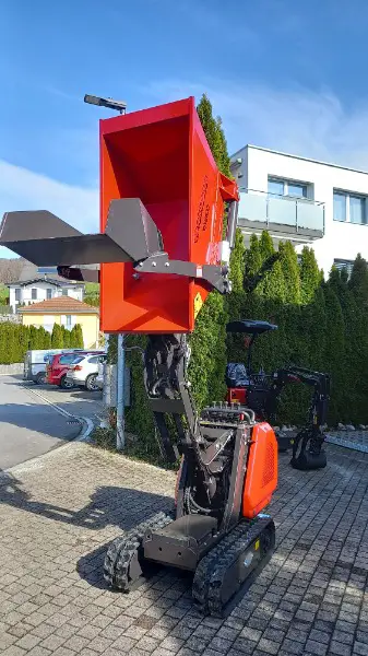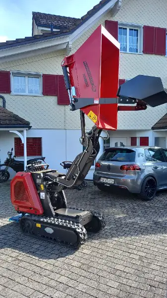 Mit diesem Dumper können sie sich selber beladen und in eine Hochmulde entladen.