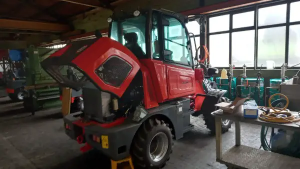 Zylinder, Rückfahrkamera, Schwimmfunktion, Kabinenheizung, Motorheizung, mechanischer Joystick, Radio, 35 Grad Drehwinkel, kippbare Kabine, Parallelhubwerk.