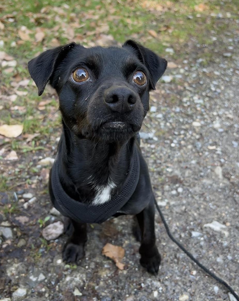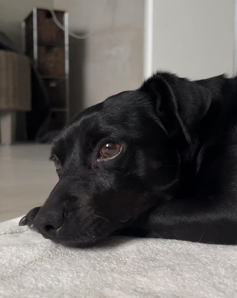 Negro ist momentan bei mir auf Pflegestelle, da der Pinscher Mischlingsrüde im Tierheim nur schlecht zur Ruhe kommen konnte. Ursprünglich ist der