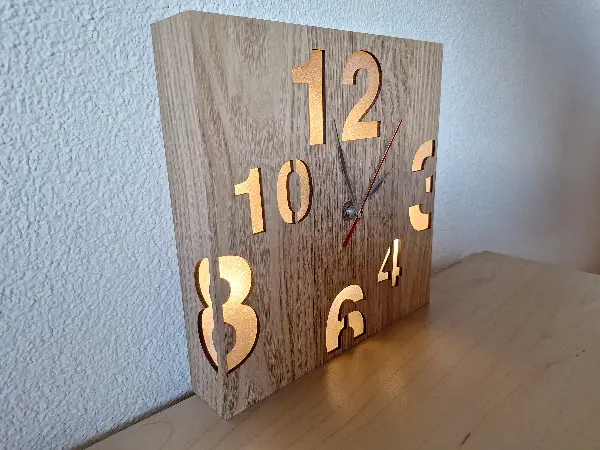 Die masse von Wanduhr sind: 22 x 22 x 5 cm.