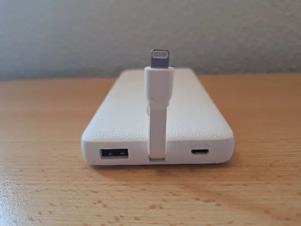 10000mAh Kapazität mit eingebautem MFi Lightning Kabel, weicher Griff durch glattes Gummi-Finishing und iSmart Schnellladetechnologie. Überhitzungs-Schutz, Schutz vor Überladung und Kurzschluss-Schutz mit Spannungs- und Strom-Stabilisator.