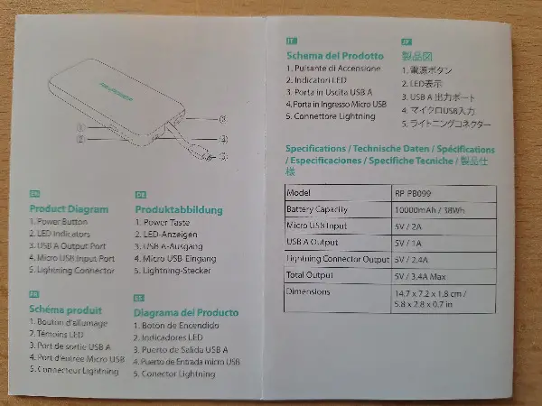 Powerbank RAVPower RP-PB099 Lightning 10000mAh ink. Kabel