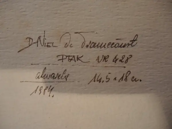 Signatur und Beschirftung auf der Rückseite des Werkes