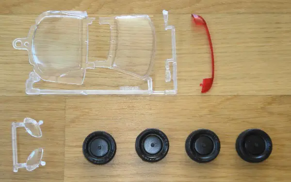 Der Bausatz ist von 1994, die Teile sind noch originalverpackt, der Karton hat Gebrauchsspuren.