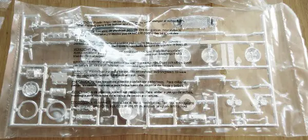 Der Bausatz ist von 2002, die Teile sind noch originalverpackt, der Karton weist Gebrauchsspuren auf.