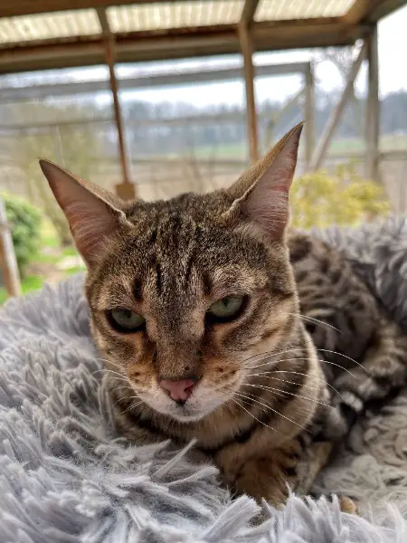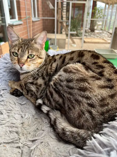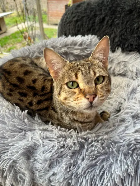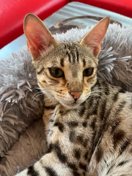 Derzeit haben wir eine ehemalige F4-Zuchtdame, Miss Lucy, die im August 2022 geboren wurde. Sie ist eine silver black spotted tabby, die nun kastriert ist und ein neues Zuhause sucht. Miss Lucy beeindruckt nicht nur durch ihr wunderschönes Aussehen, sondern auch durch ihre anhängliche und verspielte Art. Sie ist, wie Savannahs typischerweise sind, sehr aktiv und liebt es, ihre Menschen auf ihre ganz eigene Art zu begleiten. Sie kann bei uns besucht werden und ist sofort umzugsbereit.