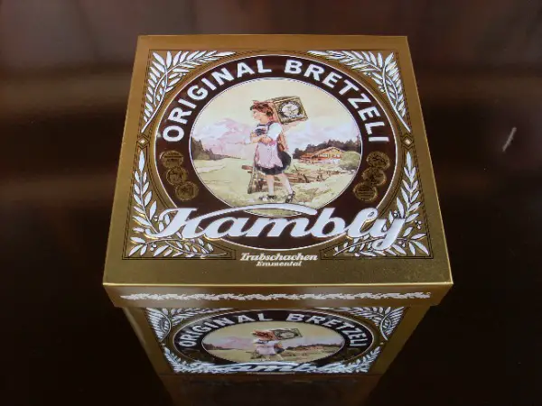 Jolie boîte "original Brezeli Kambly" en métal, neuve