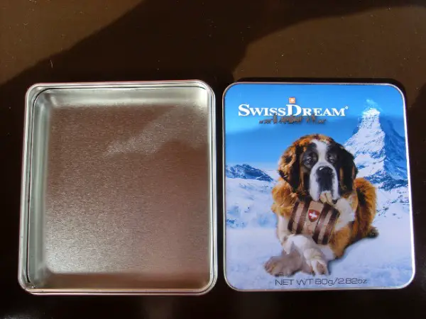 Boîte "SwissDream" avec St-bernard, en métal, neuve.